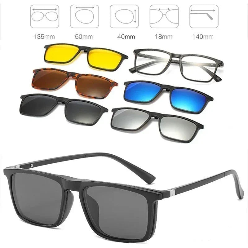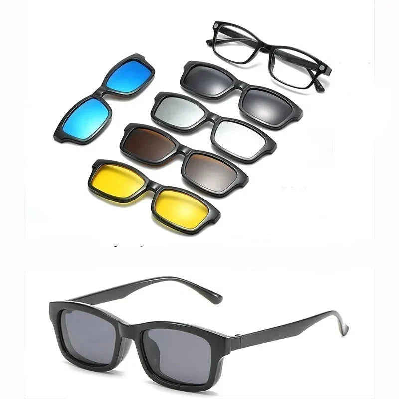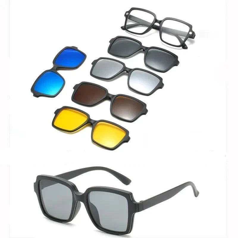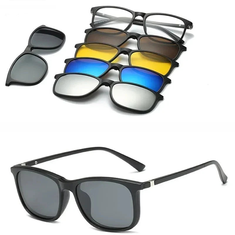 Com os Óculos de Sol Magnético 5 em 1, você terá sempre o modelo certo para cada ocasião, garantindo proteção, conforto e um visual moderno em qualquer momento.